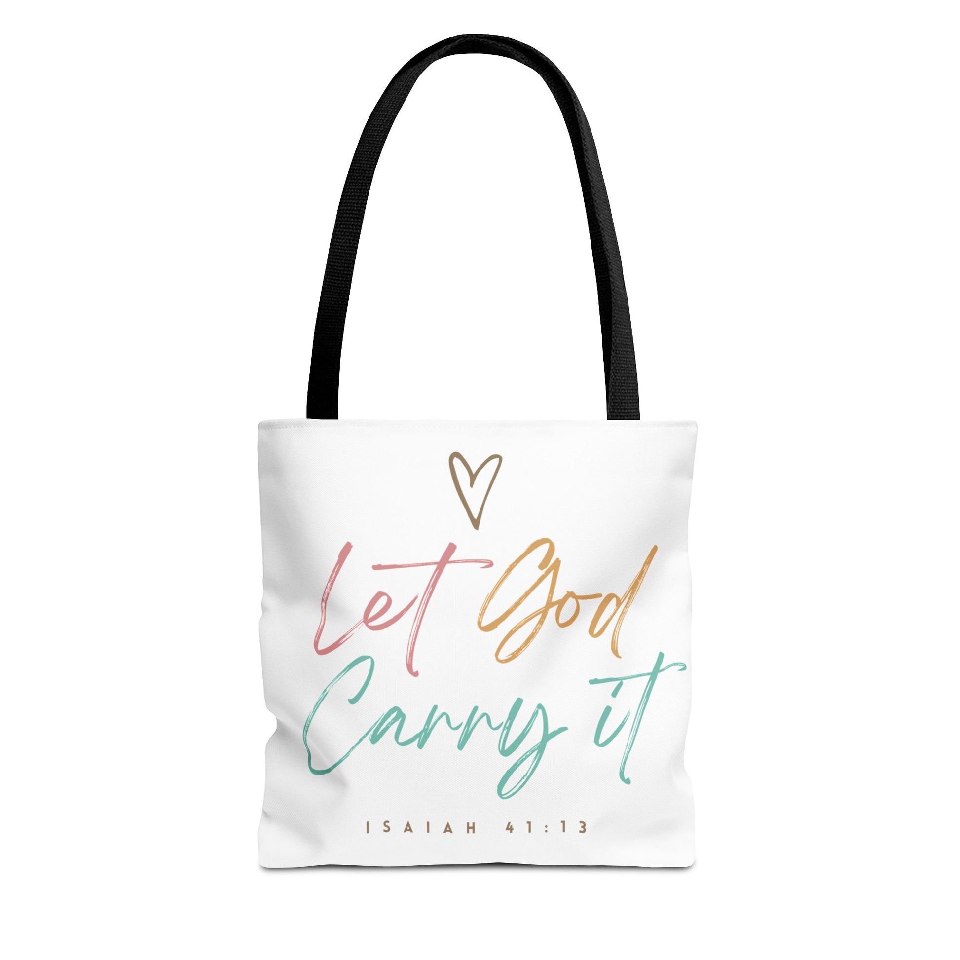 Inspirational Tote Bag Black Handle 13", 16", 18" - Let God Carry It | Isaiah 41:13