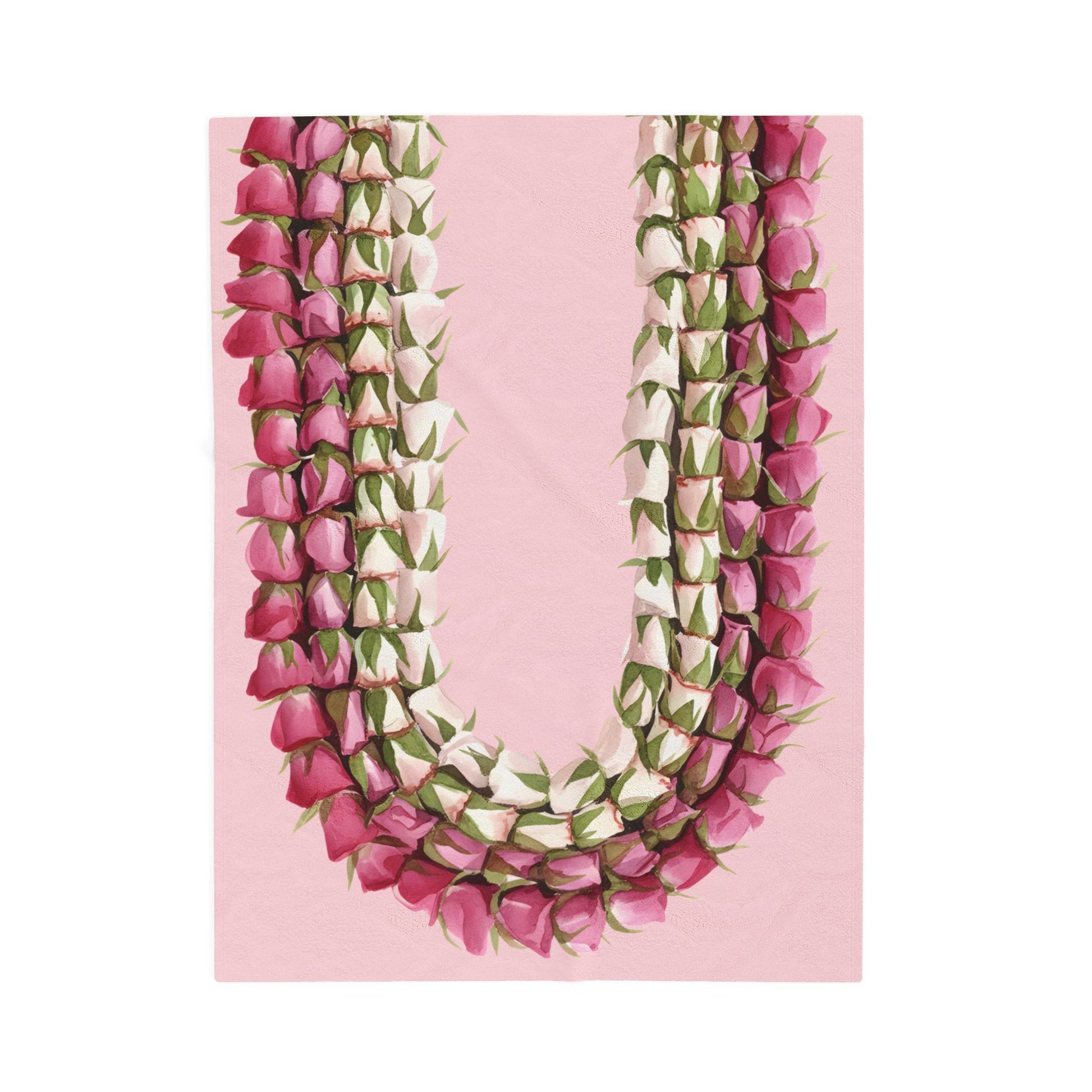 Wrap yourself in gentle warmth and a touch of island charm. This velveteen plush blanket features a soft blush background and a cascading lei of pink and white petals—printed on one side with vivid, high-detail color. The medium heavy-weight fabric feels luxuriously soft against the skin, while double-needle topstitching around the edges keeps the blanket looking neat and lasting through everyday use. It settles across laps during slow mornings, layers over a sofa for cozy movie nights, and adds a calming, floral accent to quiet moments at home or after a long travel day. The lightweight drape and quick-drying polyester construction make it effortless to care for and easy to tuck into a carry bag for a beachside picnic or plane ride.